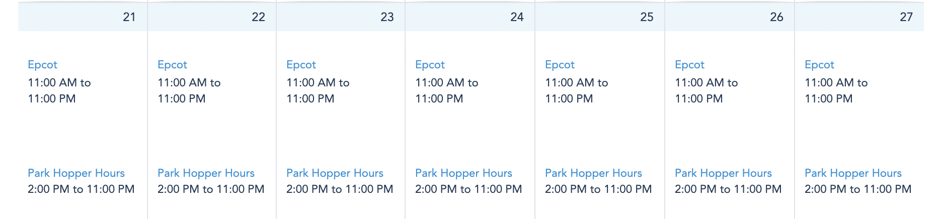 March 21st through March 27th also got a facelift to their hours and EPCOT will now be open for a full 12 HOURS from 11AM-11PM.