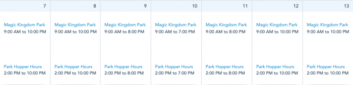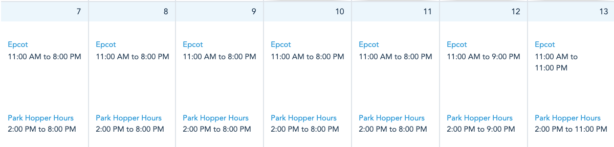 Disney World Park Hours the Week of March 7th