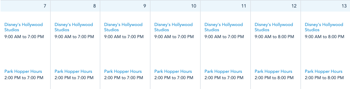Typically, Disney’s Hollywood Studios has the same hours daily. Next week, however, there will be a slight variation! From Sunday, March 7th through Thursday, March 11th, Hollywood Studios will be open from 9AM-7PM. On Friday, March 12th, and Saturday, March 13th, Hollywood Studios will be open from 9AM-8PM.