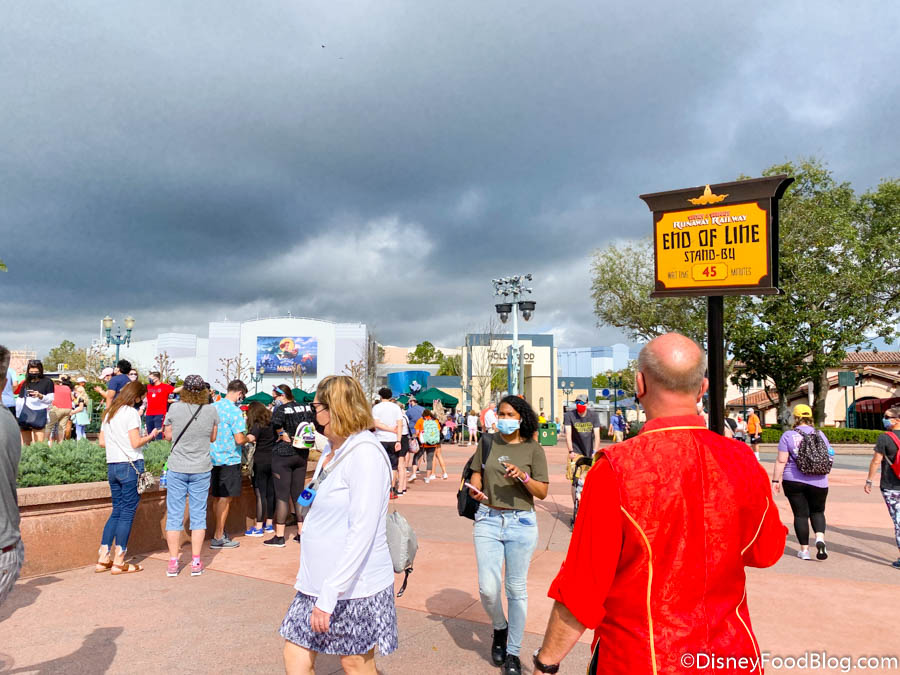 This brings us to our next point — the crowds! We visited Disney’s Hollywood Studios yesterday during the start of the EPCOT festival to take a look at how crowded the park felt. For instance, you can see here that the line for Mickey and Minnie’s Runaway Railway wasn’t quite as long as it usually is.