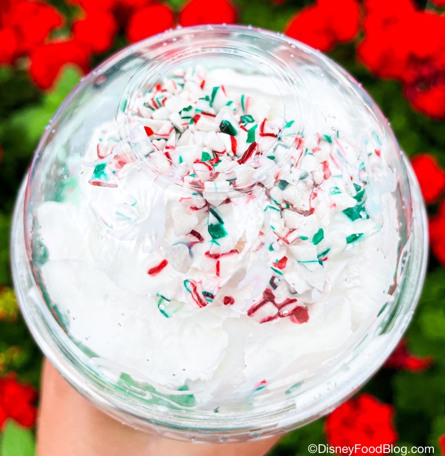 Okay, so it’s a green lemonade, whipped cream, and pieces of peppermint bark. There’s a LOT going on here.