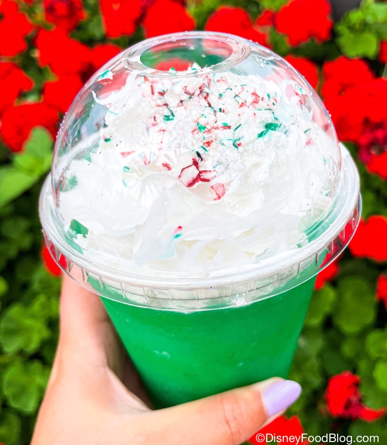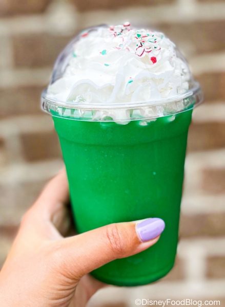 Or more aptly, it seems like TODAY, because we literally just had a peppermint drink in Disney World! In the form of a weirdly merry St. Patrick’s Day drink special at Disney Springs! Are you as confused as we are?