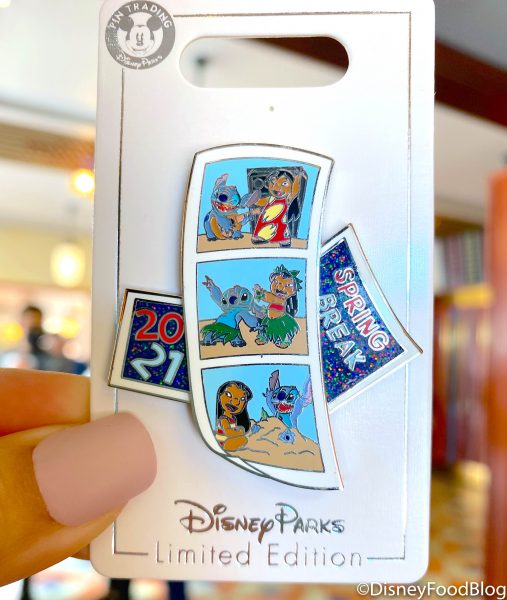 Over at the Dark Room, you can find the Spring Break Pin that features photographs of Lilo and Stitch jamming out, doing the hula, and building sand castles for $19.99!