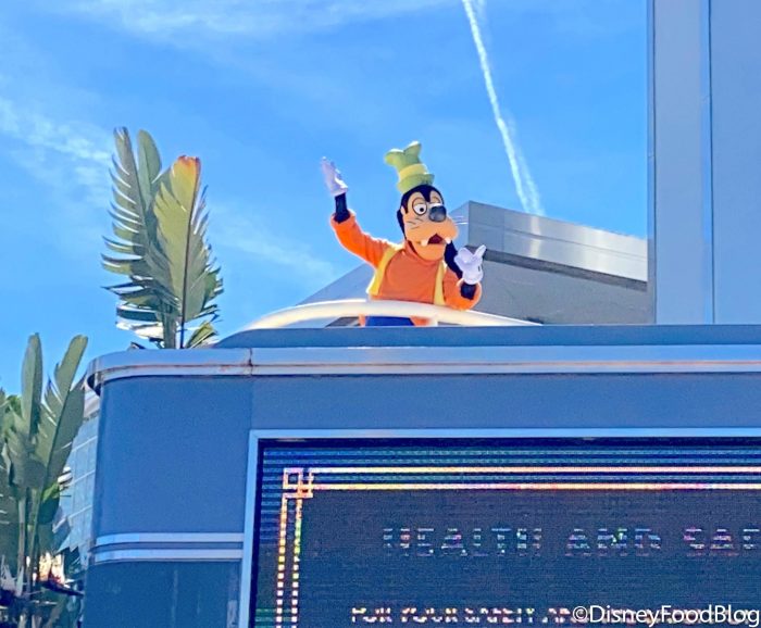 Goofy was even out in his original outfit near the Frozen Sing-Along as he waved to guests…