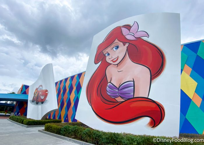 Last week, Lightning McQueen made his way back onto the newly refurbished character pages in front of Disney’s Art of Animation Resort. Now, most of the other characters have returned as well! You can see that Ariel has already swum her way back onto the page.