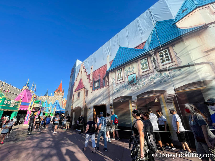 After weeks of BIG, ugly, brown scrim taking over Fantasyland, it’s finally received a makeover to better fit in with the rest of the land.