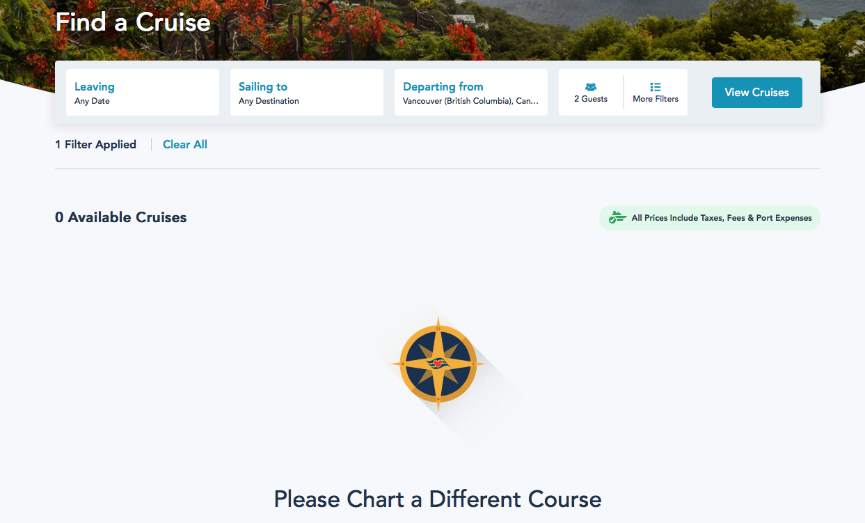 A few of Disney Cruise Line departures were meant to depart from Vancouver, Canada to places like Seattle, Alaska, and the Pacific Coast. However, they are listed as unavailable online.