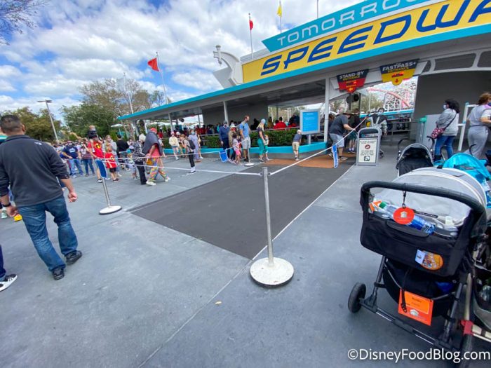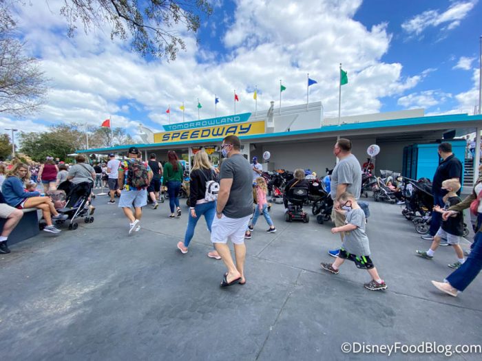 Over in Tomorrowland, the area near Tomorrowland Speedway is normally a more crowded point because there’s just less room to walk. Well, when we passed by yesterday there was even LESS room to maneuver since the strollers had to be temporarily moved.