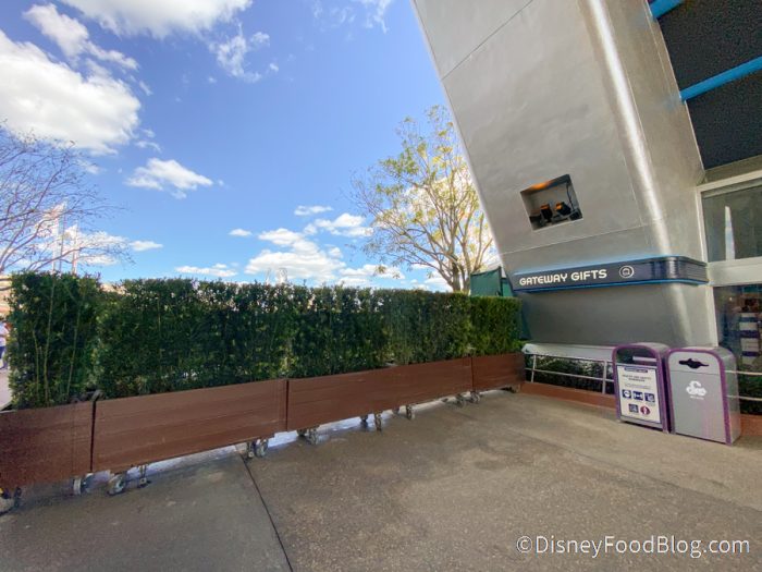 We noticed a small area of construction next to Gateway Gifts — shrubbery has been put up to close off the area to guests.