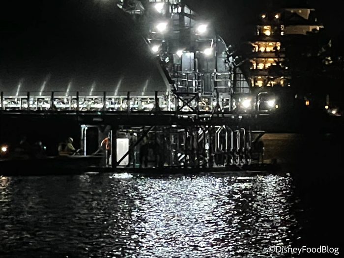 We then saw a little boat make its way to the barge where some Cast Members hopped on!