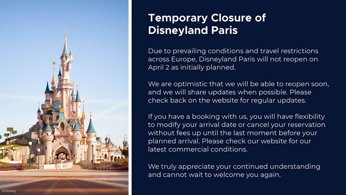 Disneyland Paris was scheduled to reopen on April 2nd.