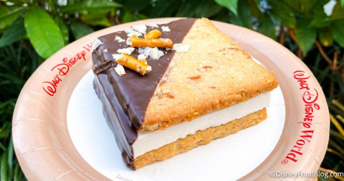 We’re not sure if this would be a hit with kids, but it definitely features a lot of sweet flavors. So, if your kiddo has a sweet tooth, they might enjoy it. The cookie sandwich costs $4.99. Check back with us for more reviews of the latest Disney World snacks!