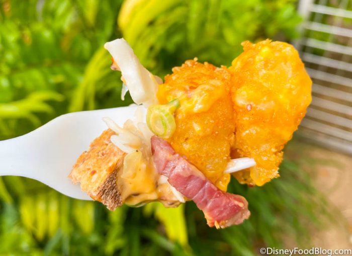 You know we’re a fan of the Totchos from Woody’s Lunch Box at Hollywood Studios. So, how do these compare?! Well, we loved this snack too! The tots were crispy and LOADED with cheese and corned beef. Plus, they were full of flavor!