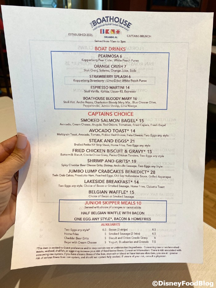 So, when we heard that The Boathouse at Disney Springs would be hosting The Captain’s Sing-Along Brunch not just with dueling pianos but also with FREE mimosas (more on that in a bit!) and a brand-new menu, we knew we HAD to check it out!