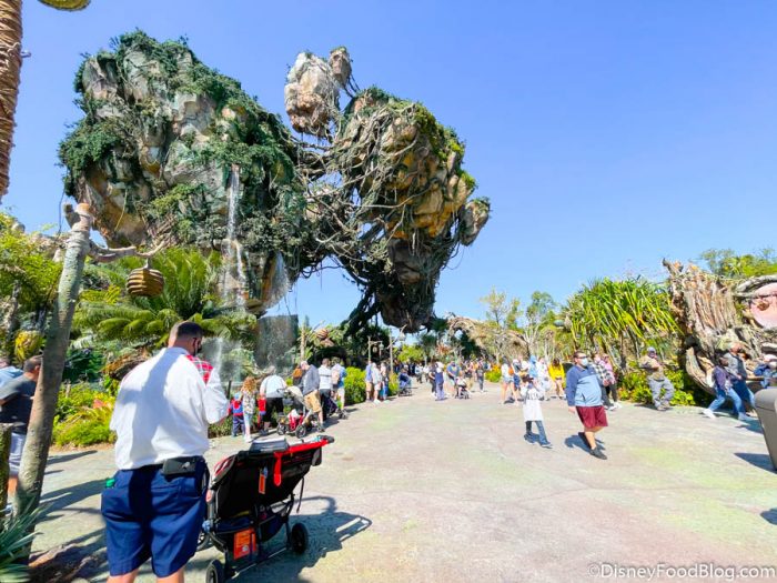 Generally, Pandora is THE hot spot in Animal Kingdom for long lines and crowd-pleasing attractions. Lately, the two star rides here — Na’vi River Journey and Flight of Passage — have commanded some of the longest queues in all of Disney World.