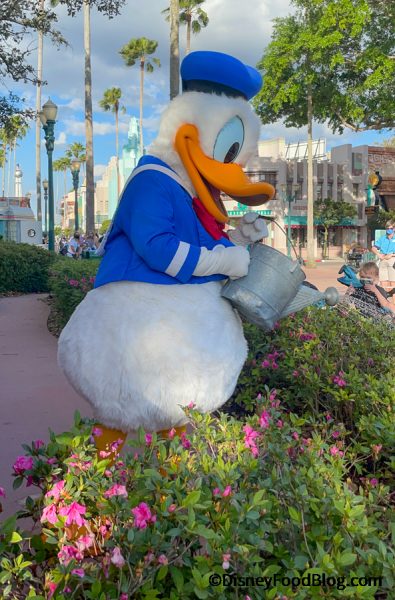 You guys, we are IN love with the character interactions going on at Hollywood Studios right now. Donald came out to say hello from the flower beds. HI, DONALD!