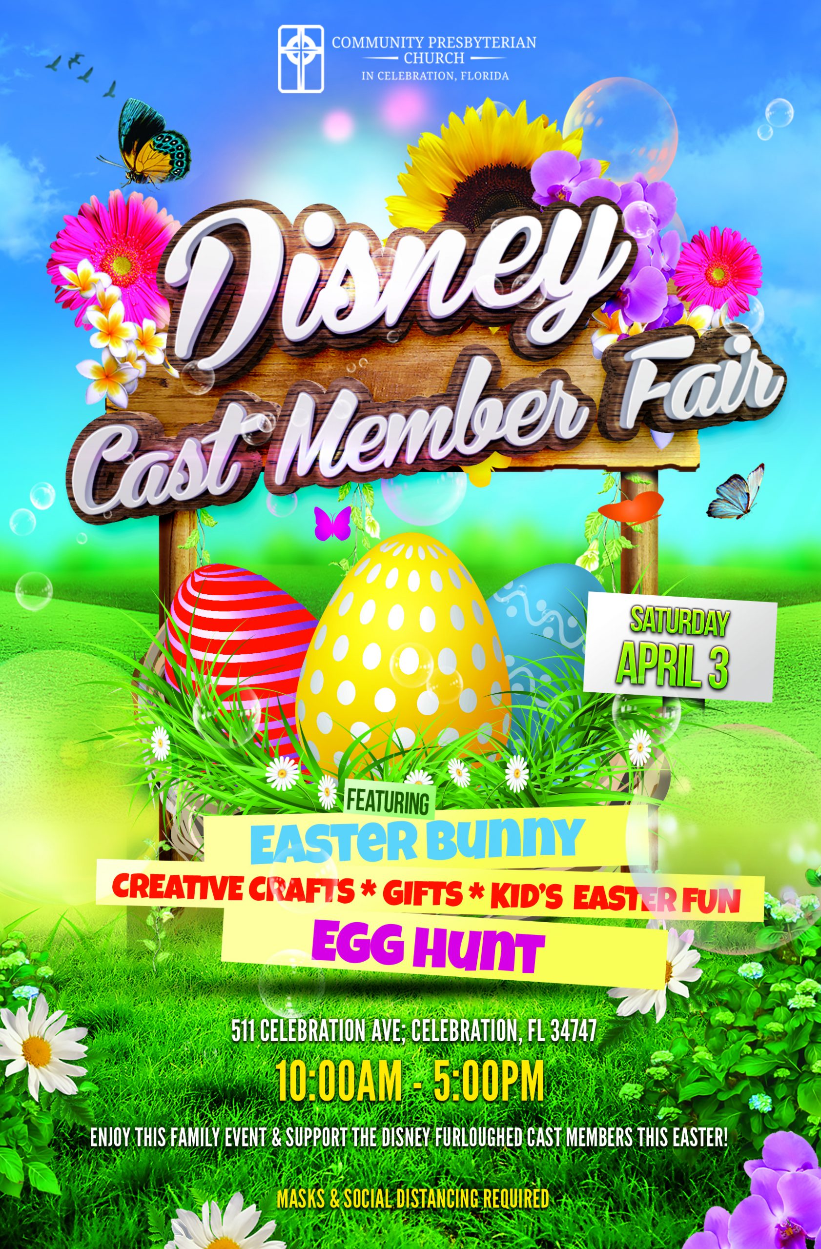 The Community Presbyterian Church in Celebration, FL is hosting a Cast Member Fair on Saturday, April 3rd. The event will be filled with Easter-themed celebrations, including the Easter Bunny, crafts, gifts, and an egg hunt. But, besides all the family fun, the fair will benefit many Cast Members who have lost their jobs.