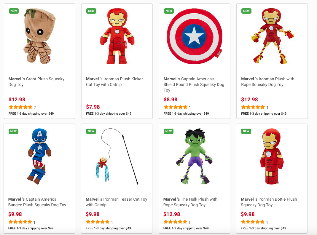 If your pup or kitten thinks they’re a superhero (or maybe you think they’re a little bit of a super villain), you can grab them some Marvel toys like the Captain America shield plush toy, a Hulk plush, and more!