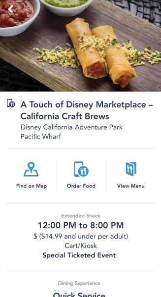 We knew that Mobile Order would be available at most of the food locations, and it already allows us to click on “Order Food” and see pictures of the menu items!