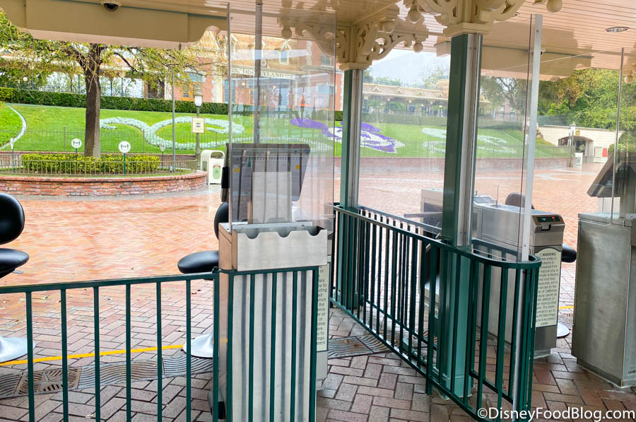 While we were passing by Disneyland’s gates today (and wishing we were inside), we noticed some social distancing markers had been added outside the turnstiles!