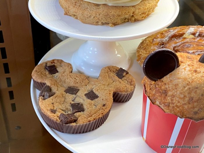 This is where we spied the Mickey Chocolate Chip Cookie just hanging out in the bakery case. Hi there, fella!