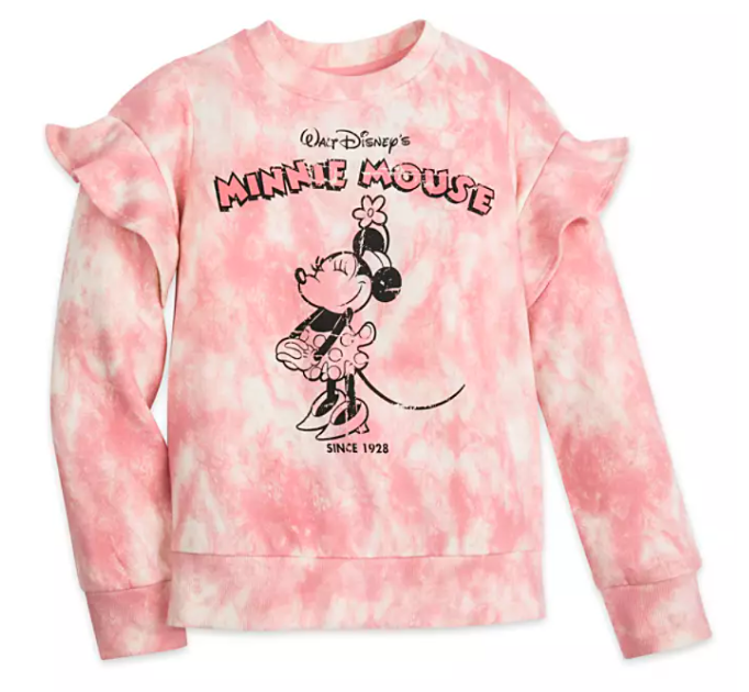 Okay, let’s move on to the kiddos! The girls’ pullover is the same pink as the women’s set, but it’s got Minnie Mouse. She’s all decked out in her vintage look!