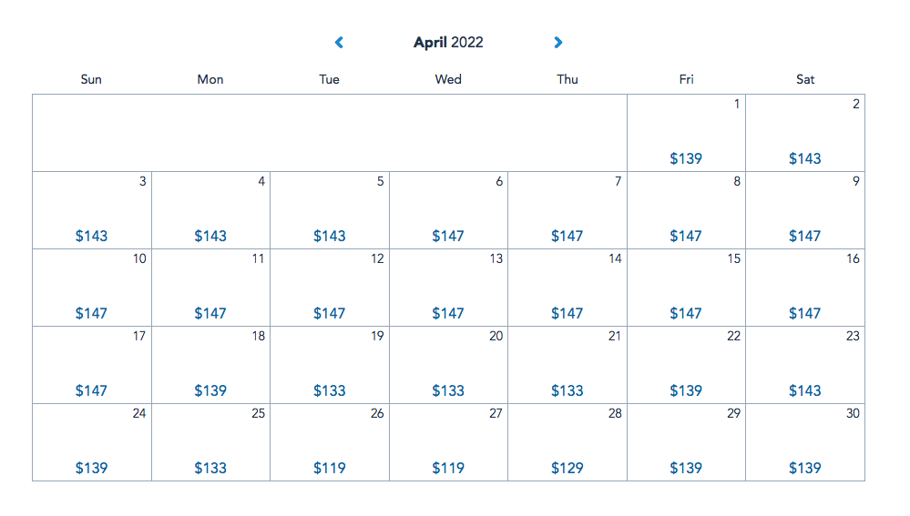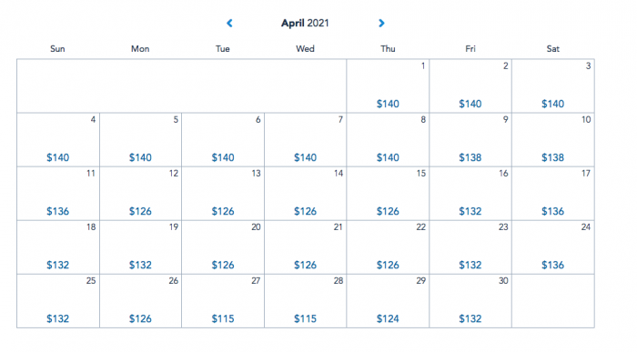 Disney has not actually increased the range of its ticket prices, but we have noticed that several days in 2022 are now priced at one of the higher price brackets. We did the math and the average ticket price in 2021 for April is $131.93, while the average ticket price in April of 2022 is $140.40.
