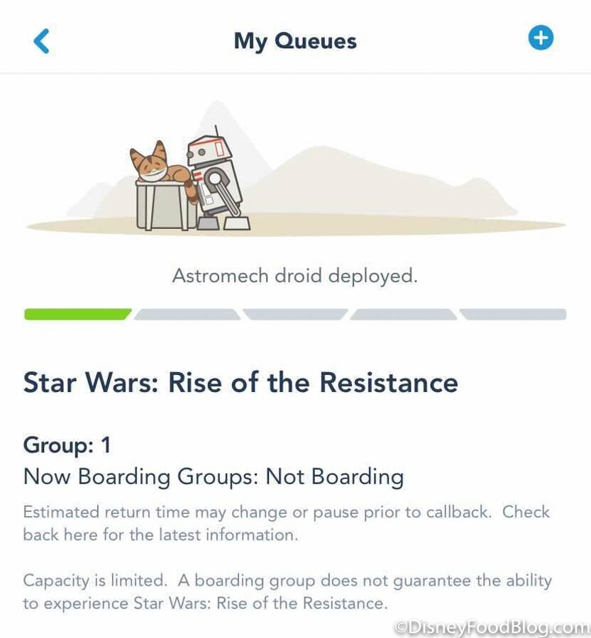 Currently, there are only two times every day that you can try to secure a boarding group through the My Disney Experience app — 7AM and 1PM. You have to plan your day to be ready and have some ninja reflexes to get your party in the virtual queue because the groups vanish in SECONDS!