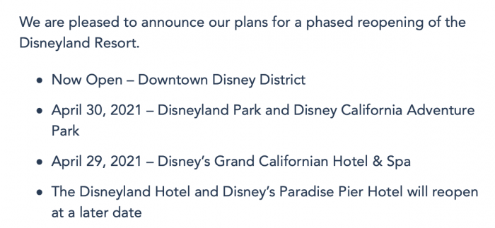 Disneyland Reopening April 30th