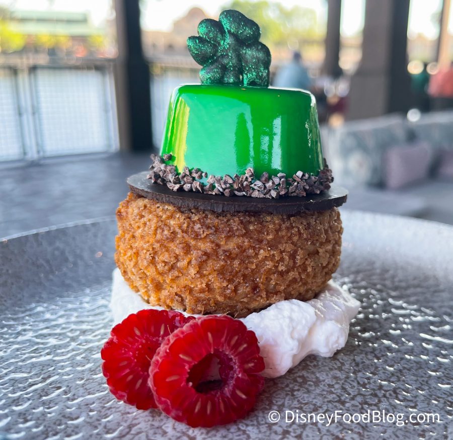 Maybe it was the little green hat that won us over, but this was one tasty dessert! You can also find this dessert at Dahlia Lounge. It’s available for $10 and will stick around on the menu from March 17th – March 20th. Check back with us for more dessert reviews from Disney World!