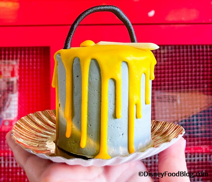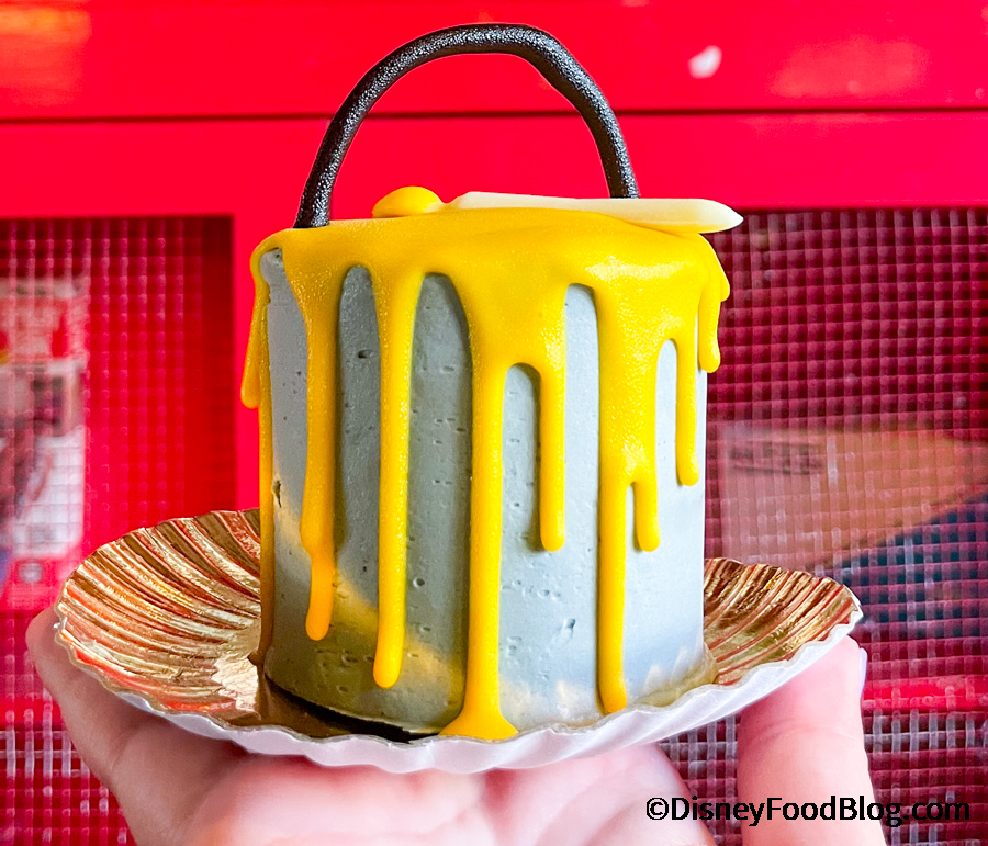 Backlot Express features a new and SUPER artistic dessert. The Paint Can Cake is a confetti cake covered with vanilla buttercream, dripping with mango-chocolate “paint,” and topped with a white chocolate paintbrush and chocolate handle.