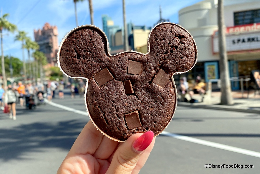 What!? We spotted not one, but TWO new Mickey-shaped treats in the park recently. First up, the snack cart at the corner of Hollywood and Sunset Boulevard is serving up the Mickey Mouse Brownie for $4.50.