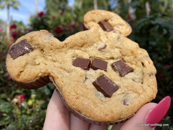We’re talking about a soft and chewy choco chip that gives us total Num Num Cookie vibes — but Mickey-shaped!