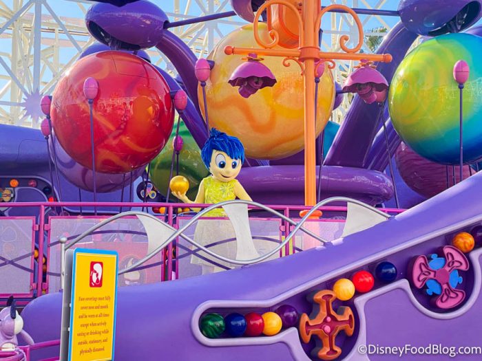 Over at Pixar Pier, we ran into Joy from Inside Out!