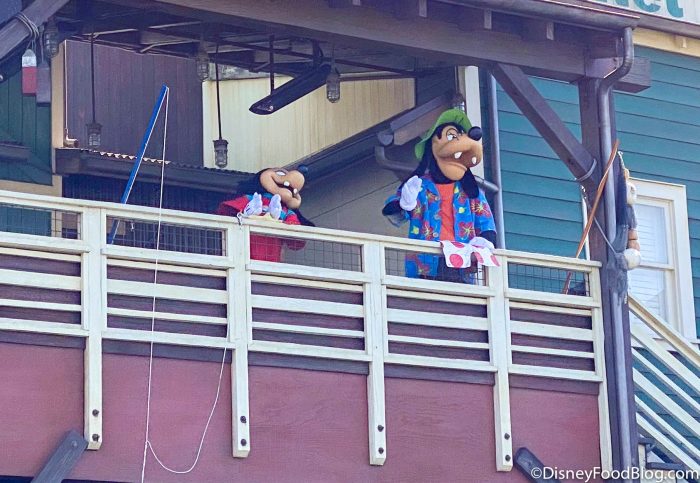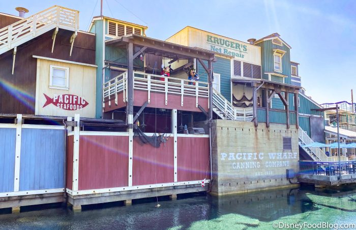 Another AMAZING character interaction we spotted was over in the Pacific Warf area in the park. You may not be able to see Max and Goofy go on a whirlwind adventure to Lester’s Possum Park BUT you CAN see them in California Adventure as they go fishing!!