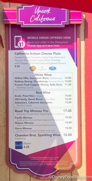 Overall, if you’re looking for a fairly standard cheese selection, some delicious mimosas, or some wine — Uncork California has you covered! If you want to try it for yourself, be sure to place your Mobile Order for this spot during your trip to A Touch of Disney.