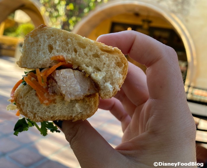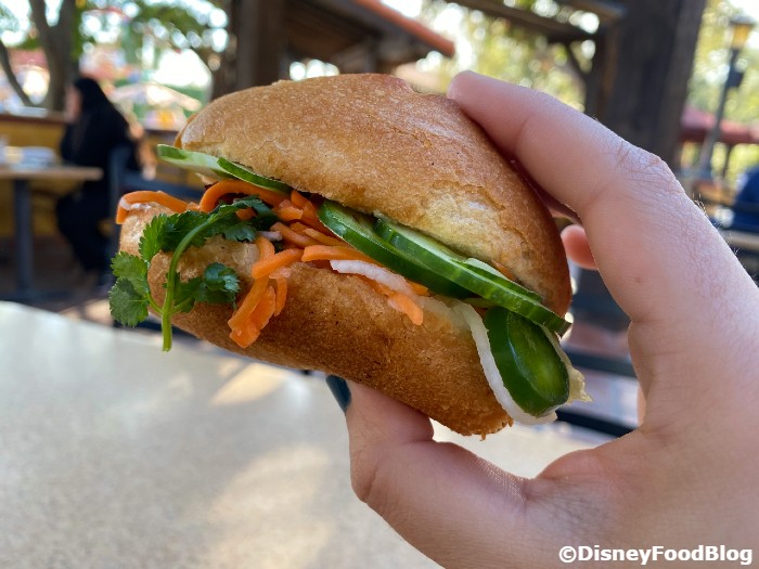 First up, we tried the Pork Belly Bánh Mi, which features marinated and grilled pork belly placed on a Crispy Baguette with Pickled Daikon, Carrots, Sliced Cucumber, Jalapeño, Cilantro, and Seasoned Mayonnaise.