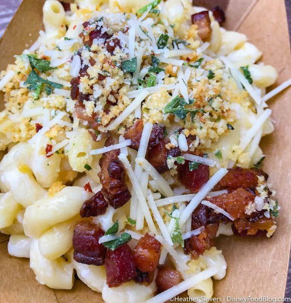 The other food item available at Golden Dreams is the Carbonara Mac ‘n’ Cheese with Nueske’s Bacon! We’ve had this item in the past at the Garlic Kissed booth at the Disney California Adventure Food and Wine Festival. But, now it’s made its way to the Golden Dreams booth.