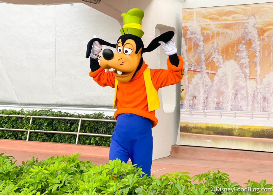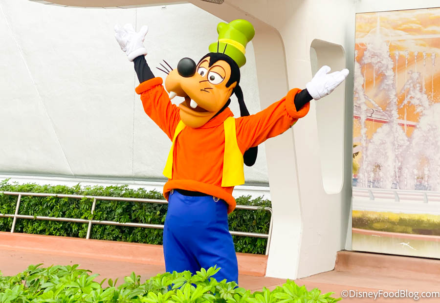 Of course, Goofy is wearing his classic orange shirt and green hat combo.