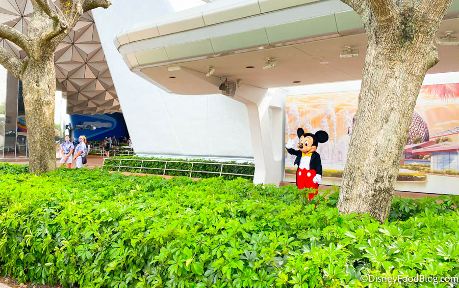 In fact, Mickey parked it right next to the Spaceship Earth mural!