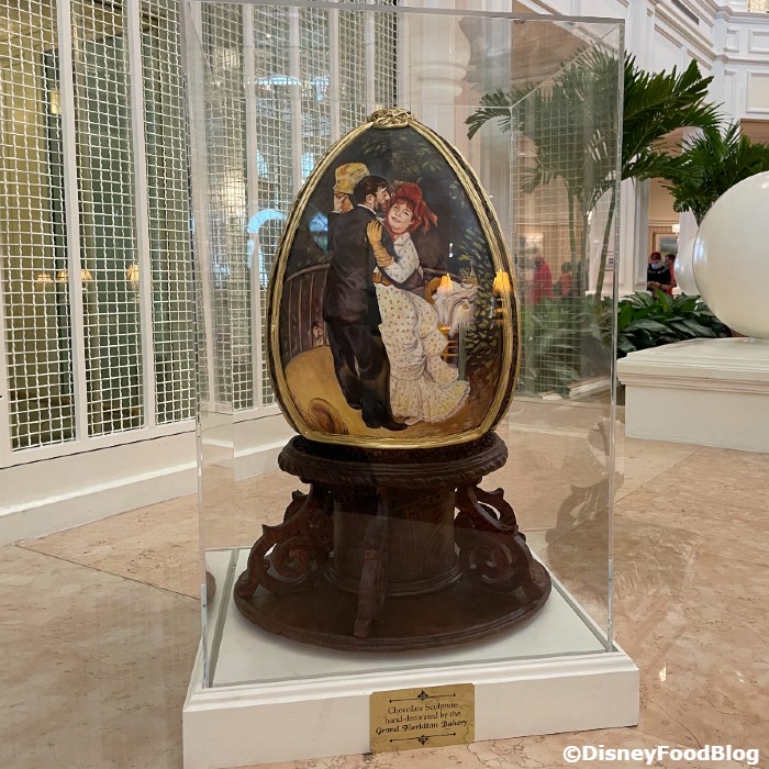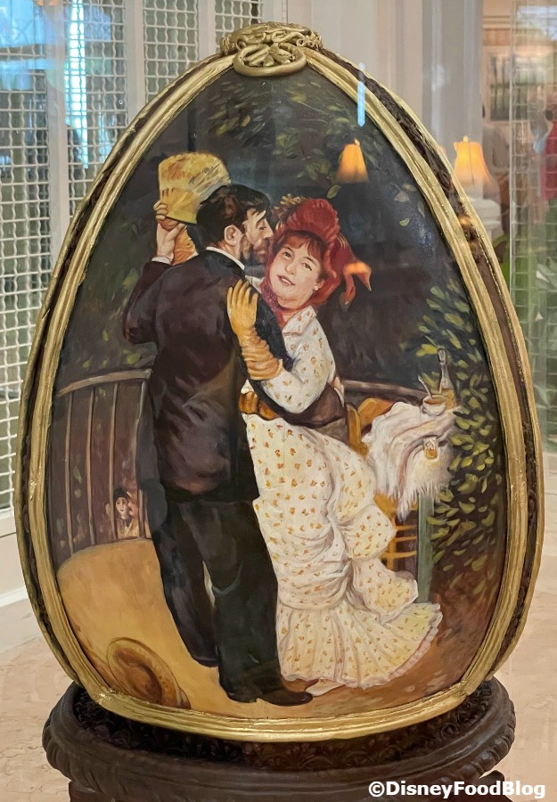 The Grand Floridian is known for its opulent Easter egg displays, and even though Easter is a few weeks away, we spotted the first signs of spring — a take on Renoir’s Dance at Bougival painted in all chocolate!