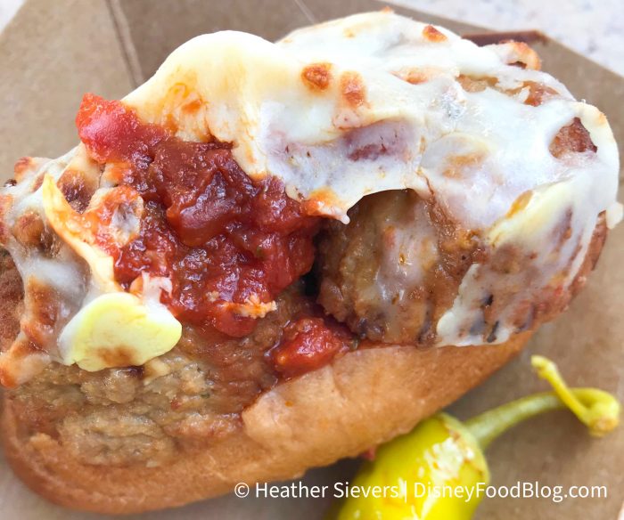 You can also grab the Mini Meatball Sub! You can usually find the full size version of this sub throughout the year, including during California Adventure’s annual Food and Wine Festival. These subs are mighty tasty if you get them while they’re fresh, but beware if you order this on a blazing hot day — not the best idea to send a heavy meatball sub into your belly!