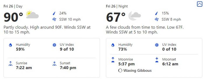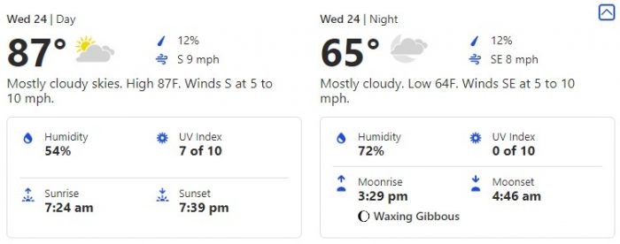 Here, we’ll see a 92-degree high and a 69-degree low.