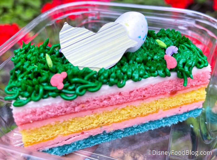 We found this fun creation at The Artist’s Palette at Disney’s Saratoga Springs Resort for $5.99. If you want a richer dessert, this might not be the cake for you, but we also think kids will love it! It’s available now through April 5th. Stay tuned because we’re still trying ALL the Easter treats at Disney World — we’ll be back soon with more reviews.