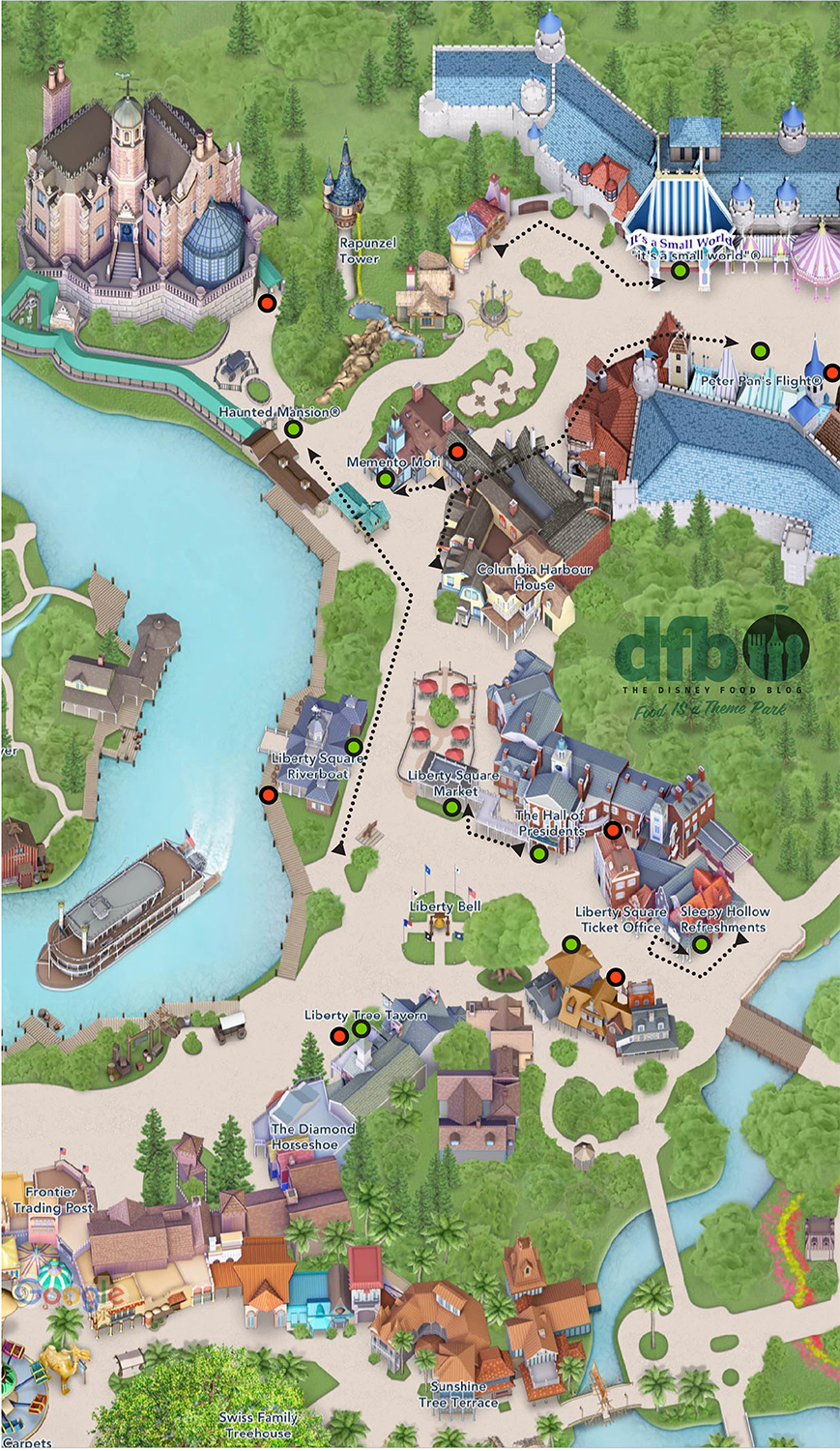 Then, our map moves further into Frontierland and into a bit of Adventureland.