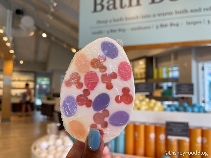 This Mickey Easter Egg Soap is a fruit-scented soap bar filled with pastel-colored eggs and Mickey ears.