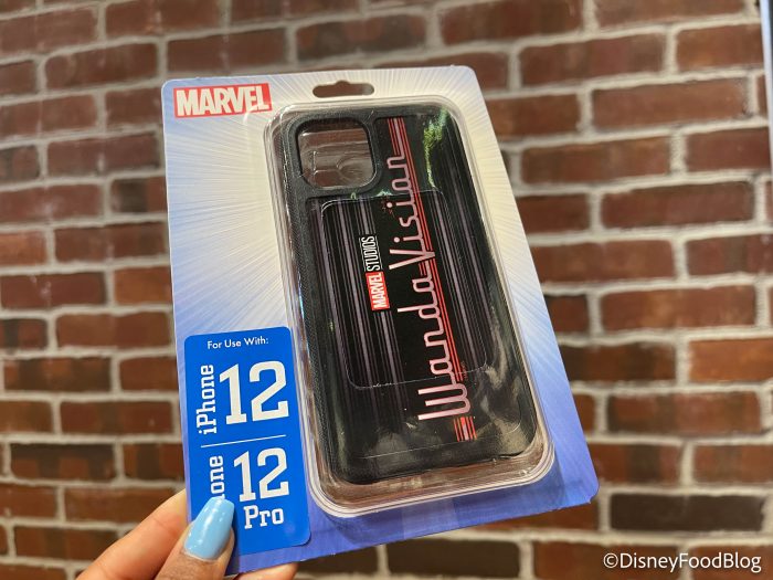 We were super excited to find TWO WandaVision phone cases! The first showcases the classic WandaVision title. The black background makes it look like the title popped up on a TV screen!