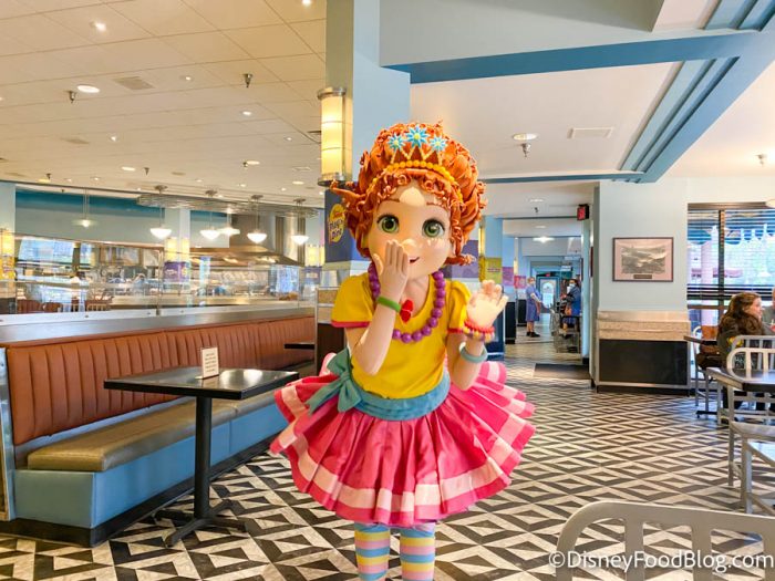 In order to maintain a distance, the characters now greet guests from a distance giving tons of waves and even some twirls (from Fancy Nancy, of course). Guests are asked to remain seated at their table as the characters make their rounds and an overhead announcement comes on throughout the meal reminding everyone of that guideline. The characters will stop at each table briefly so you can snap a distanced selfie and share some waves!