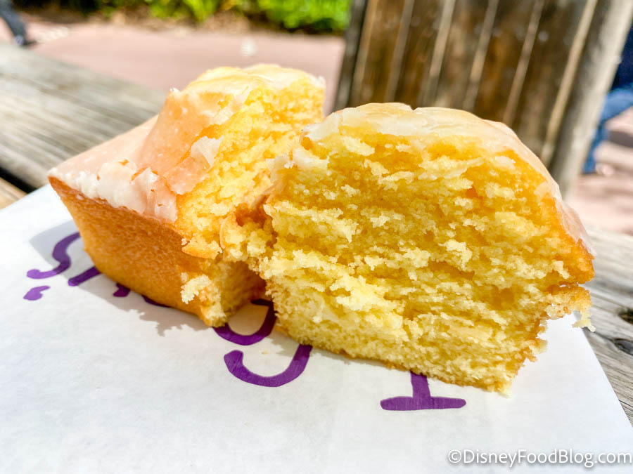 Over at Disney’s Animal Kingdom, we were in need of a little mid-day pick-me-up and headed over to Joffrey’s Royal Anandapur Tea Company located in the Asia area. Little did we know, we’d find something brand new to the kiosk! Sitting out front in the pastry case was a new Lemon Cake. So we gave it a try!
