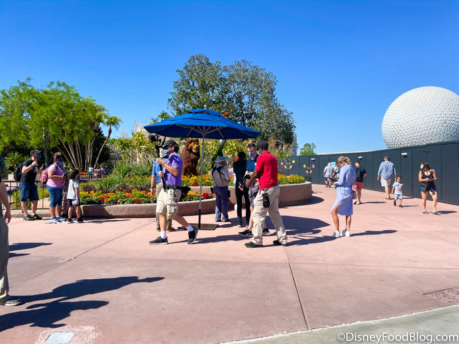 And in the category of things we WEREN’T expecting in EPCOT…we saw a filming crew in front of the Lion King topiary! Check out that fancy gear.